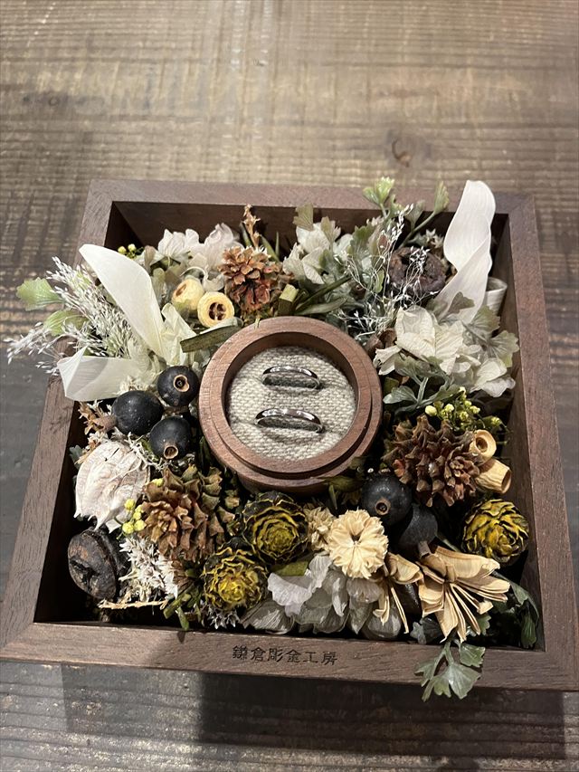 自分たちは夫婦共に現場で働いてるため指輪が傷つきやすくて、変形しやすくて、素材を選ぶのにとても迷いました。純金だと曲がりやすく傷つきやすいと聞いたので、プラチナで作ることにしました。